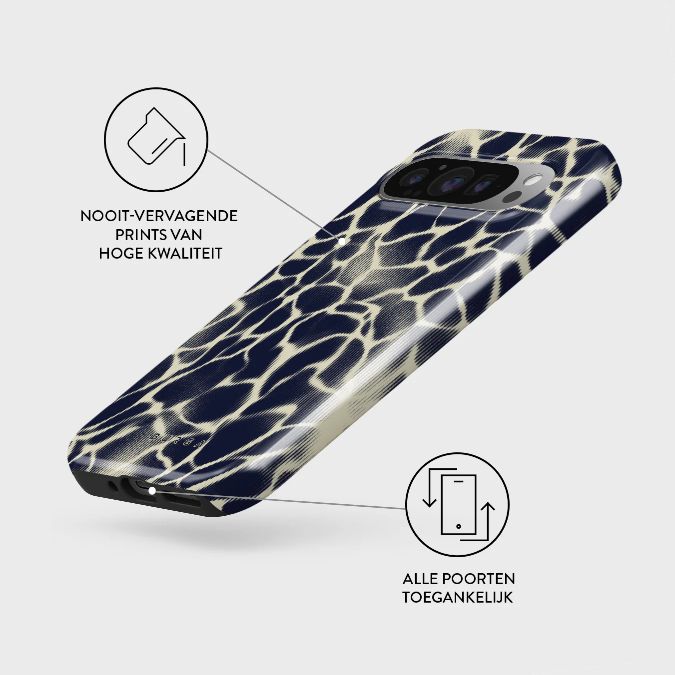 - Verhoogde randen rond de camera voor extra bescherming.