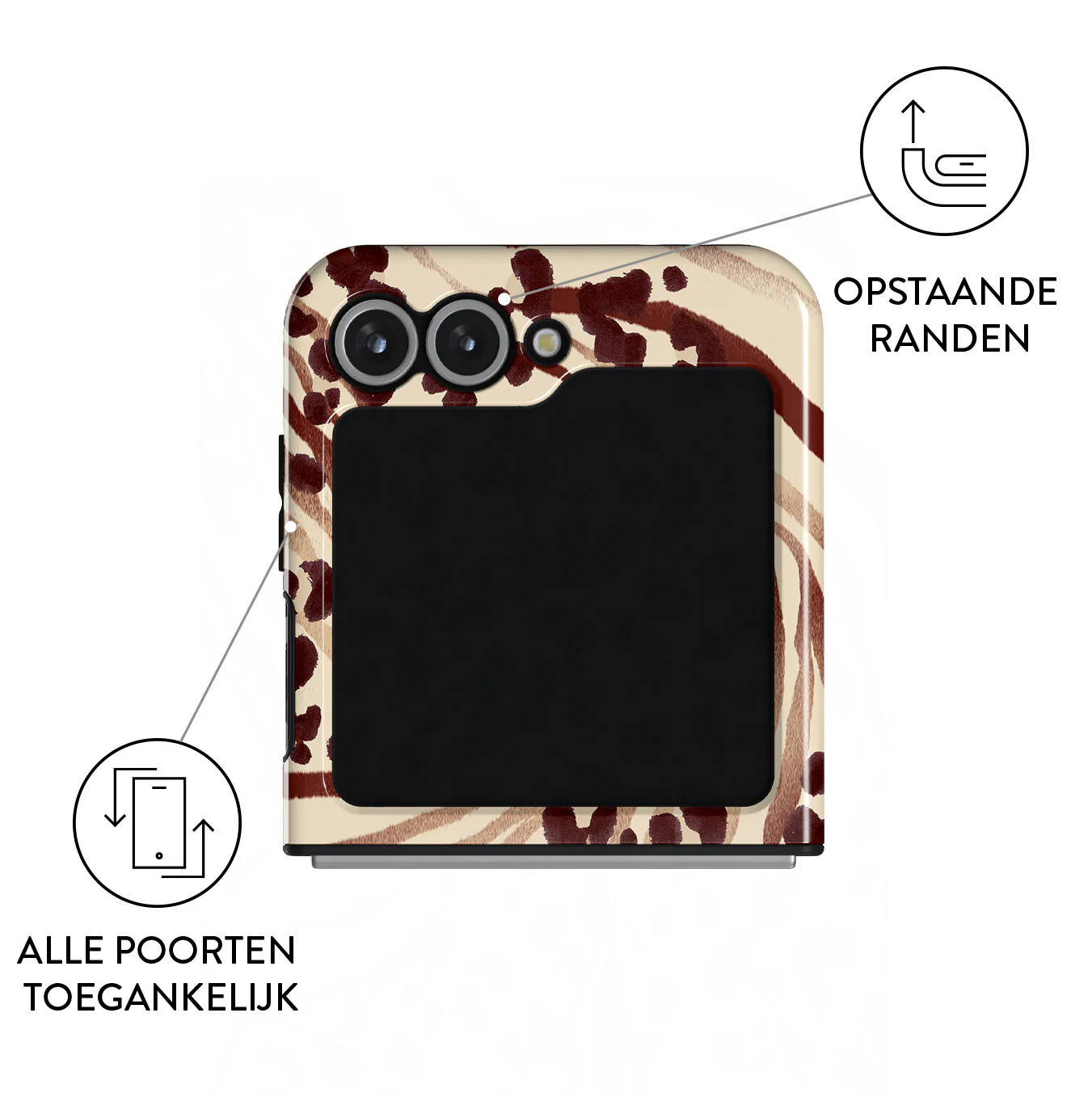 - Verhoogde randen rond de camera voor extra bescherming.