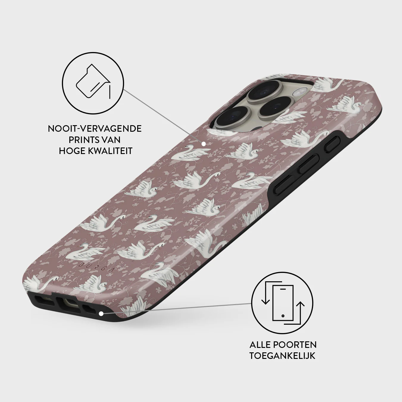 Kenmerken van dit design: zwanen, zachtroze achtergrond, vintage patroon