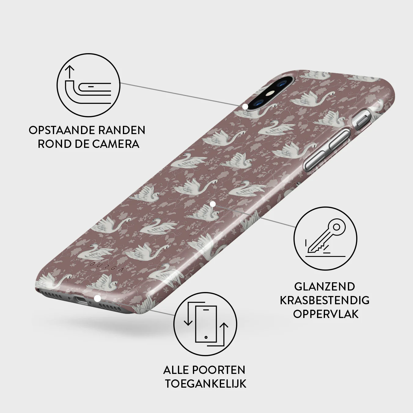 - Verhoogde randen rond de camera voor extra bescherming.