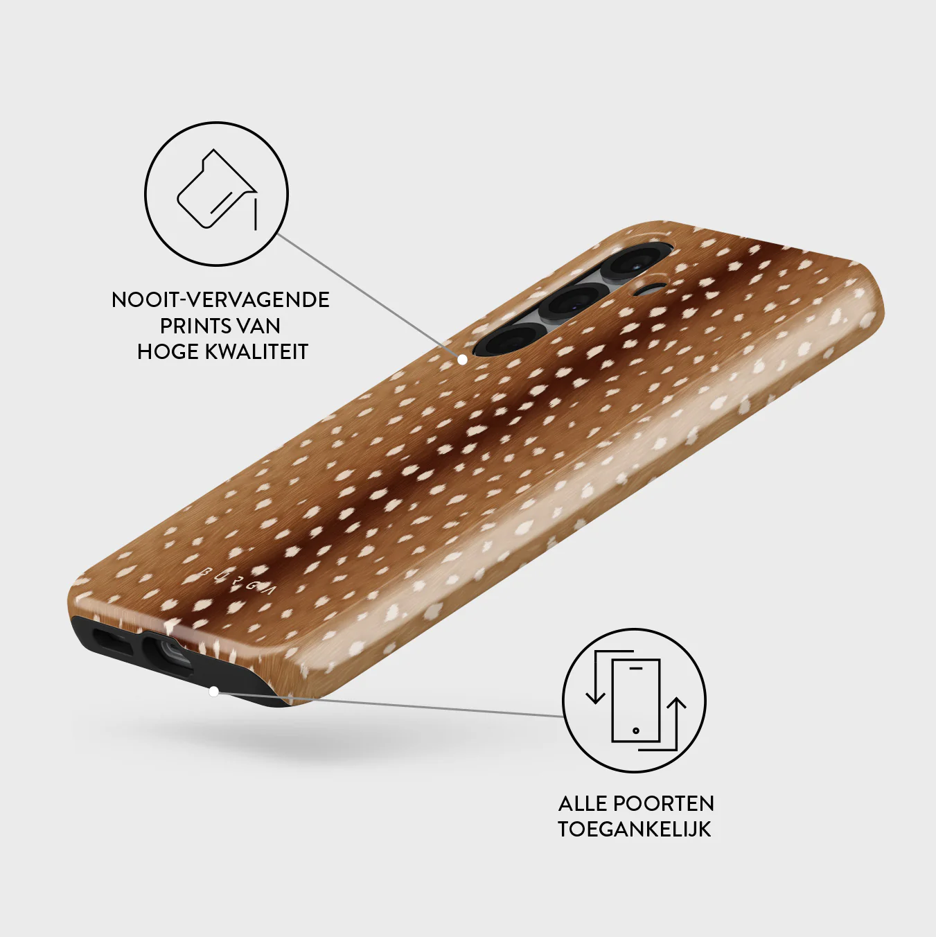 - Verhoogde randen rond de camera voor extra bescherming.
