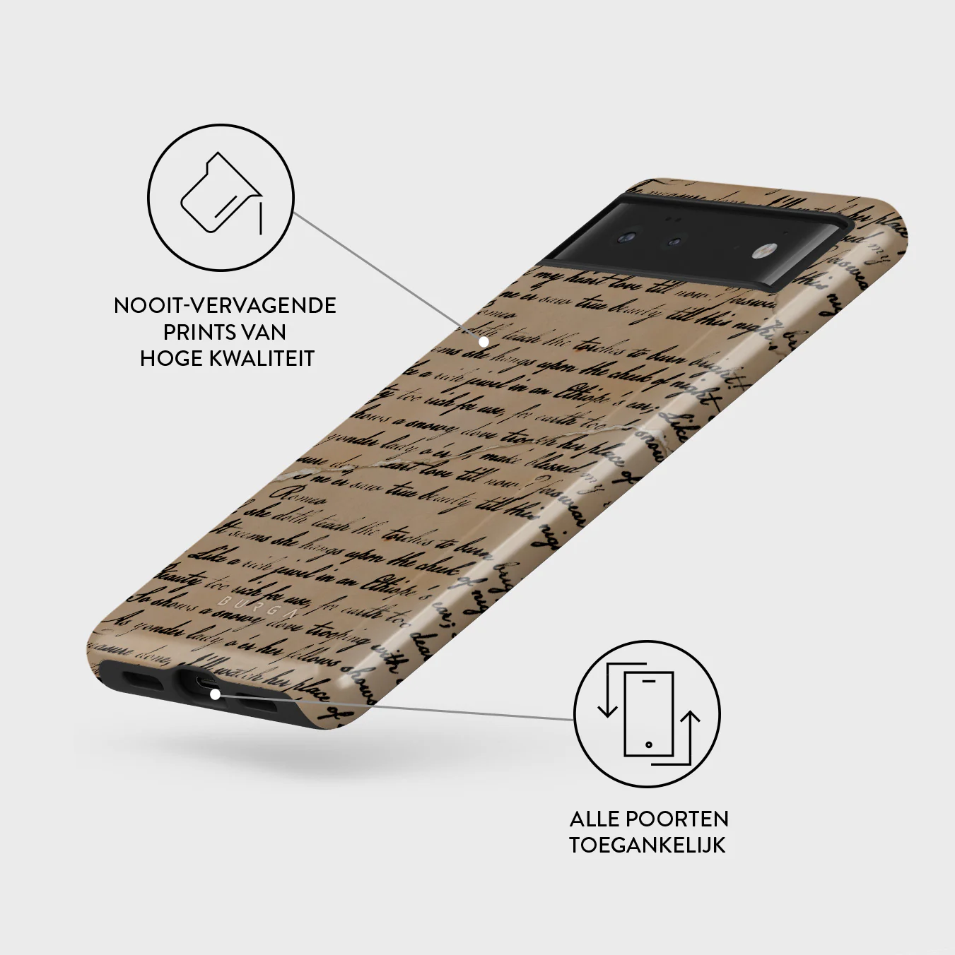 - Verhoogde randen rond de camera voor extra bescherming.