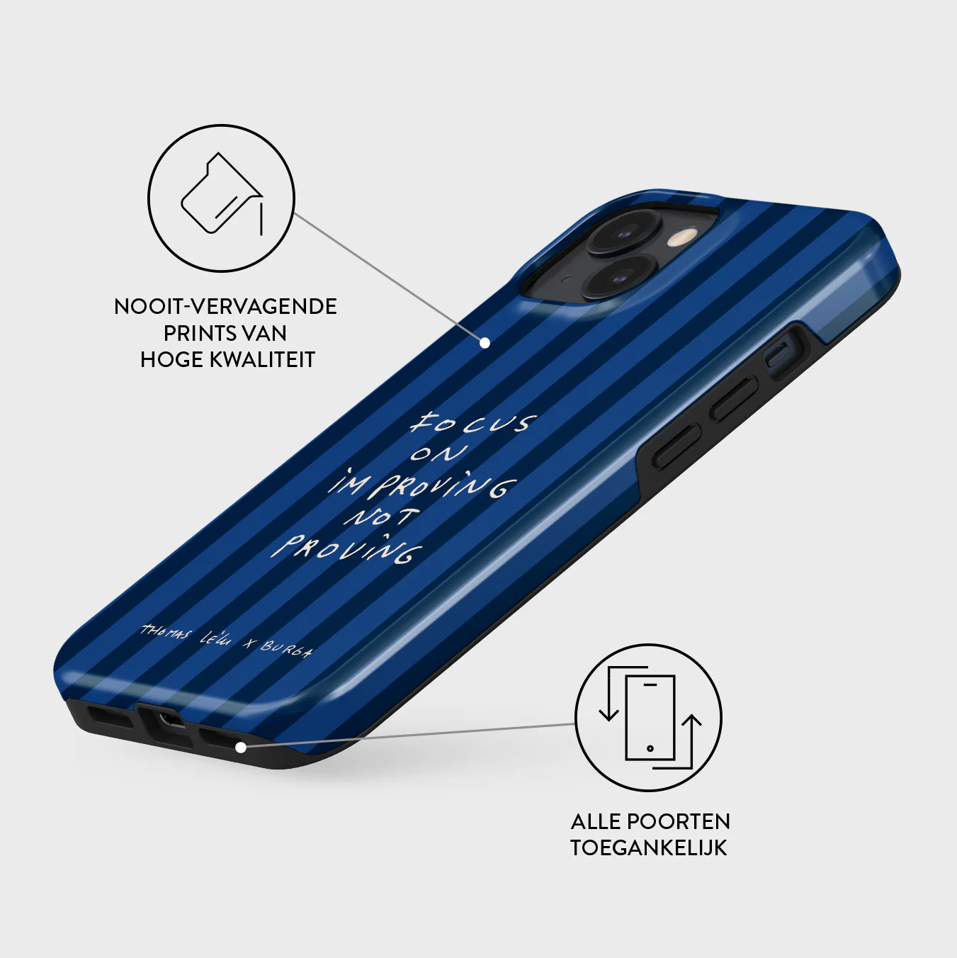 Kenmerken van dit design: handgeschreven tekst, citaat, blauwe strepen