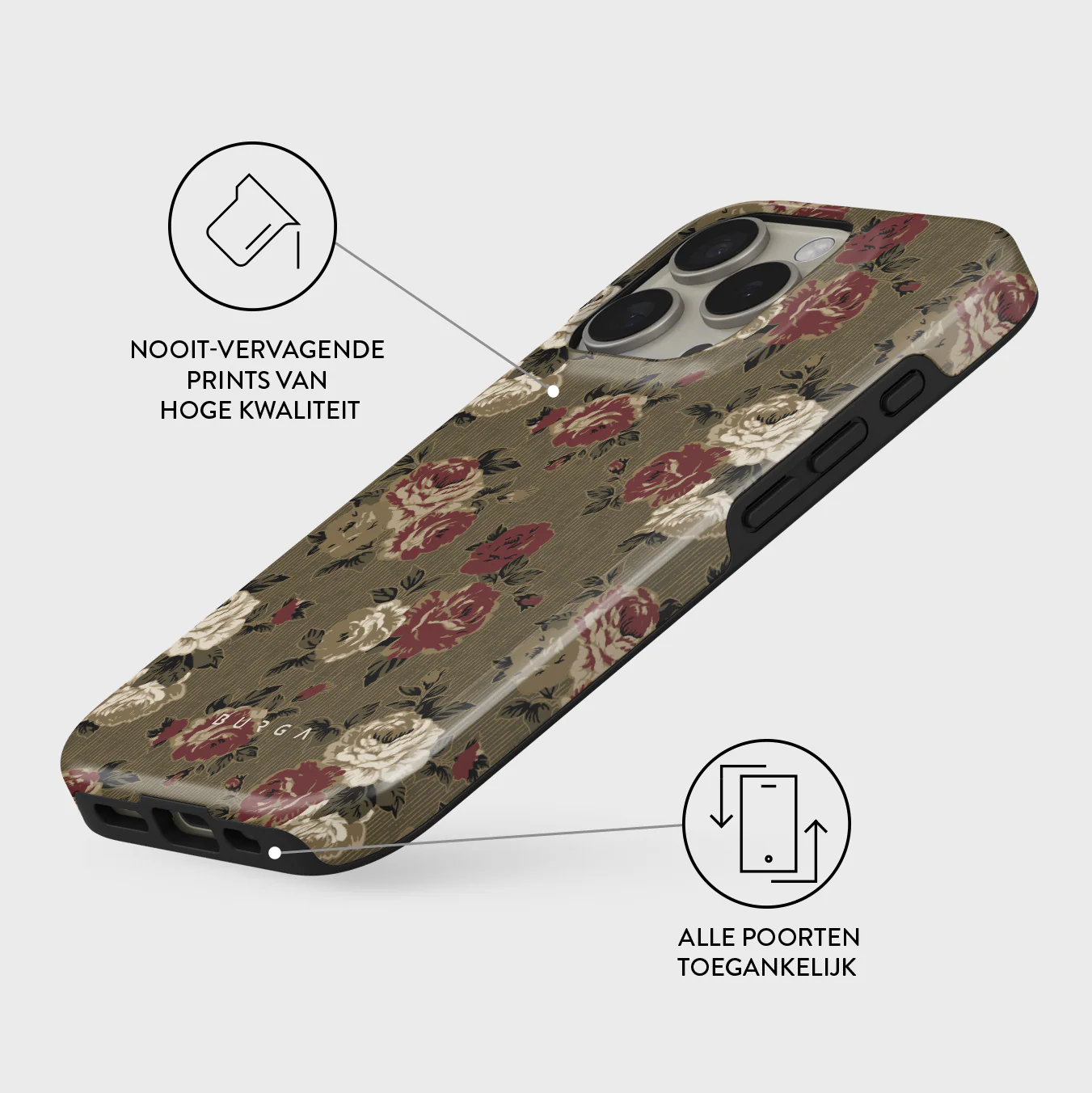 - Verhoogde randen rond de camera voor extra bescherming.
