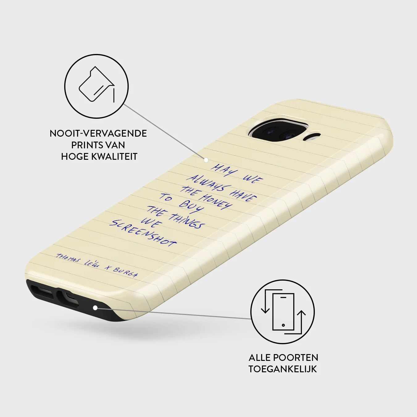- Verhoogde randen rond de camera voor extra bescherming.