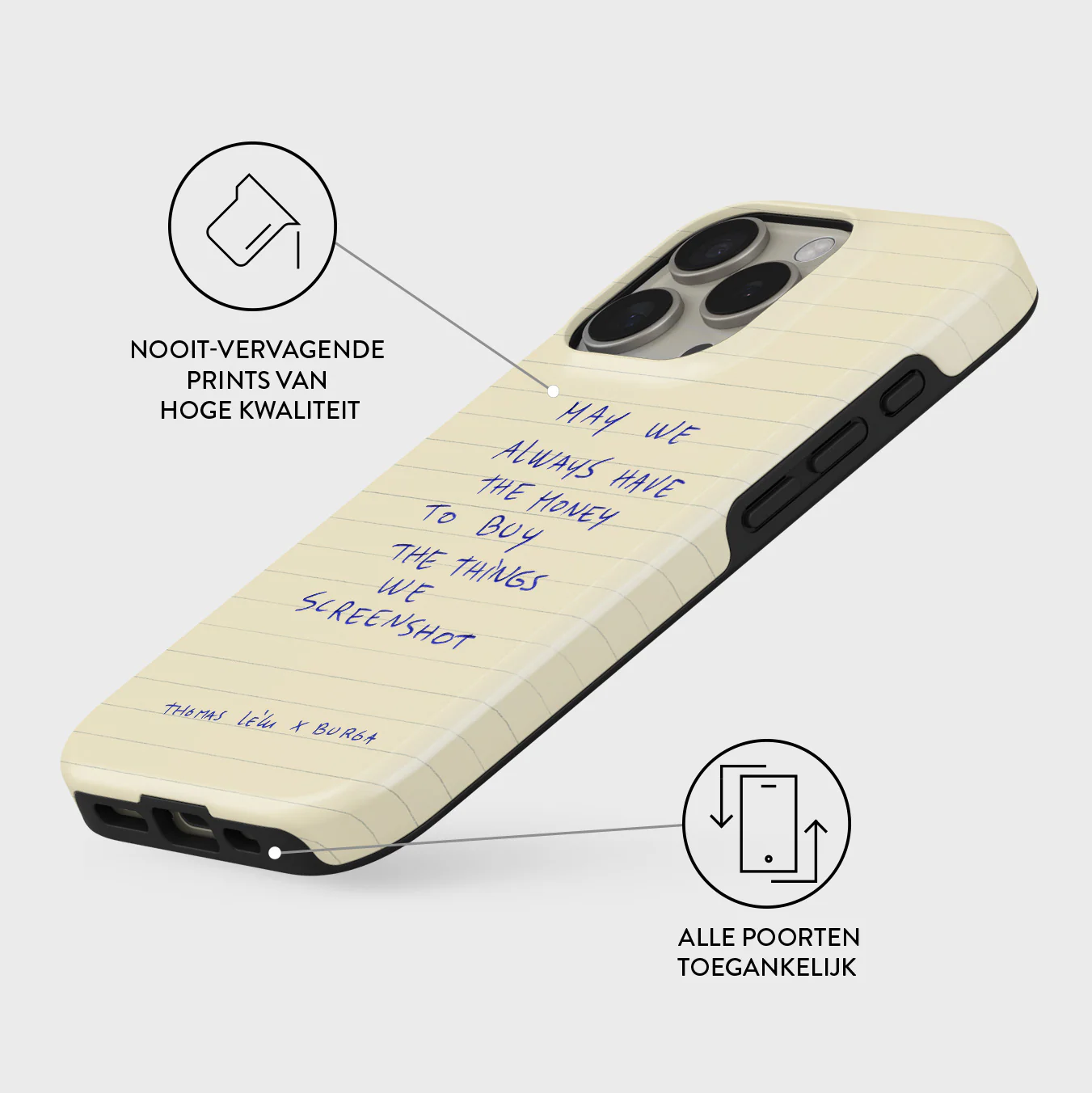 - Verhoogde randen rond de camera voor extra bescherming.