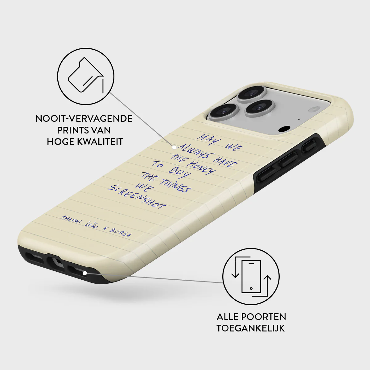 - Verhoogde randen rond de camera voor extra bescherming.