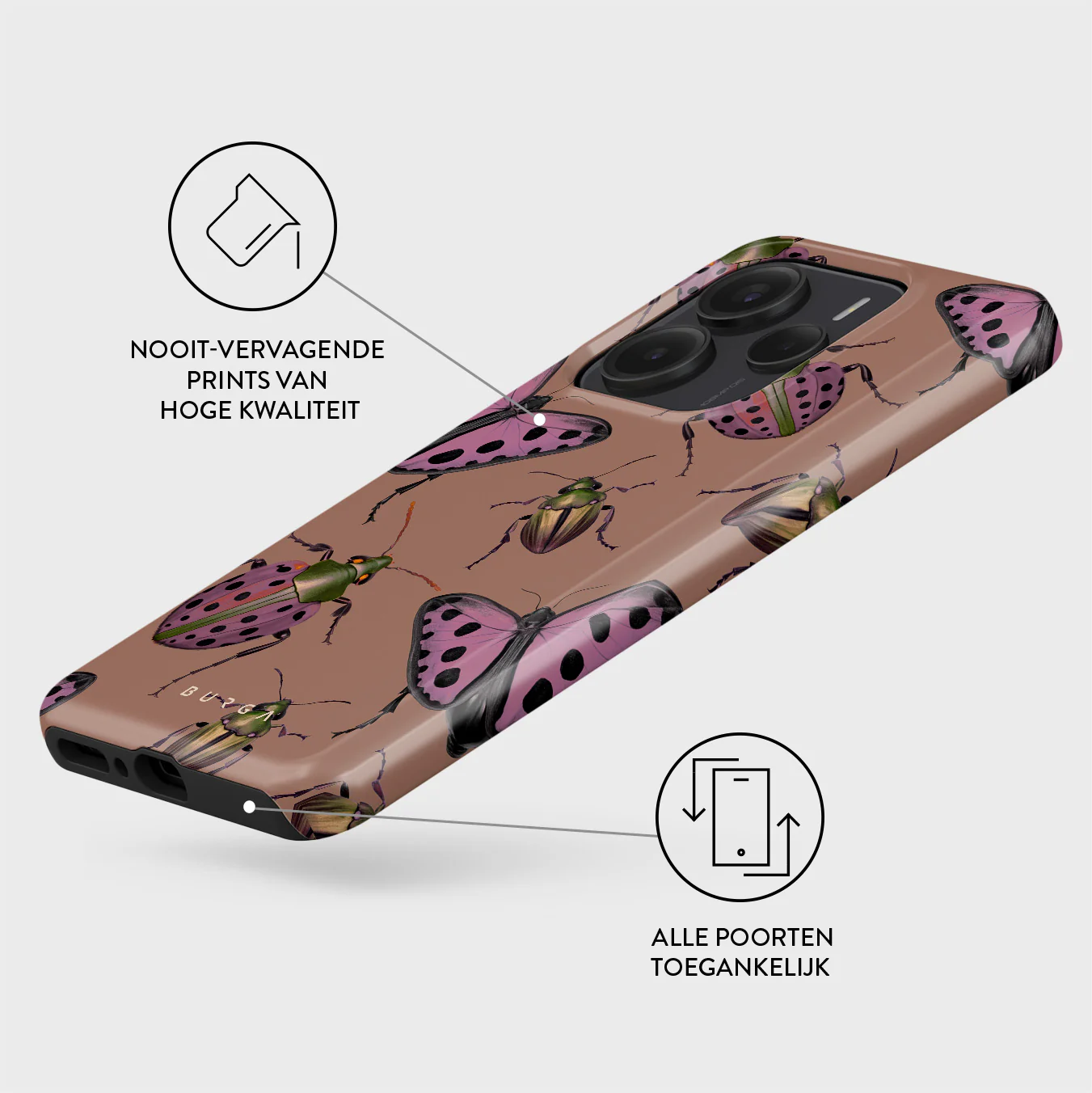 - Verhoogde randen rond de camera voor extra bescherming.