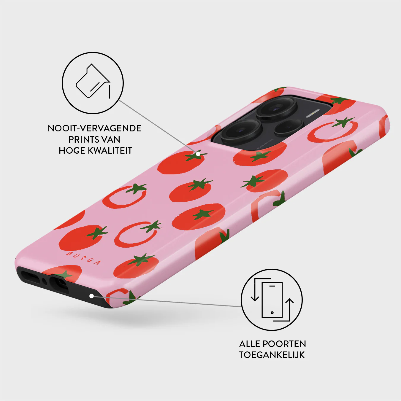 Kenmerken van dit design: Tomaten, gedurfde rode en roze kleuren.