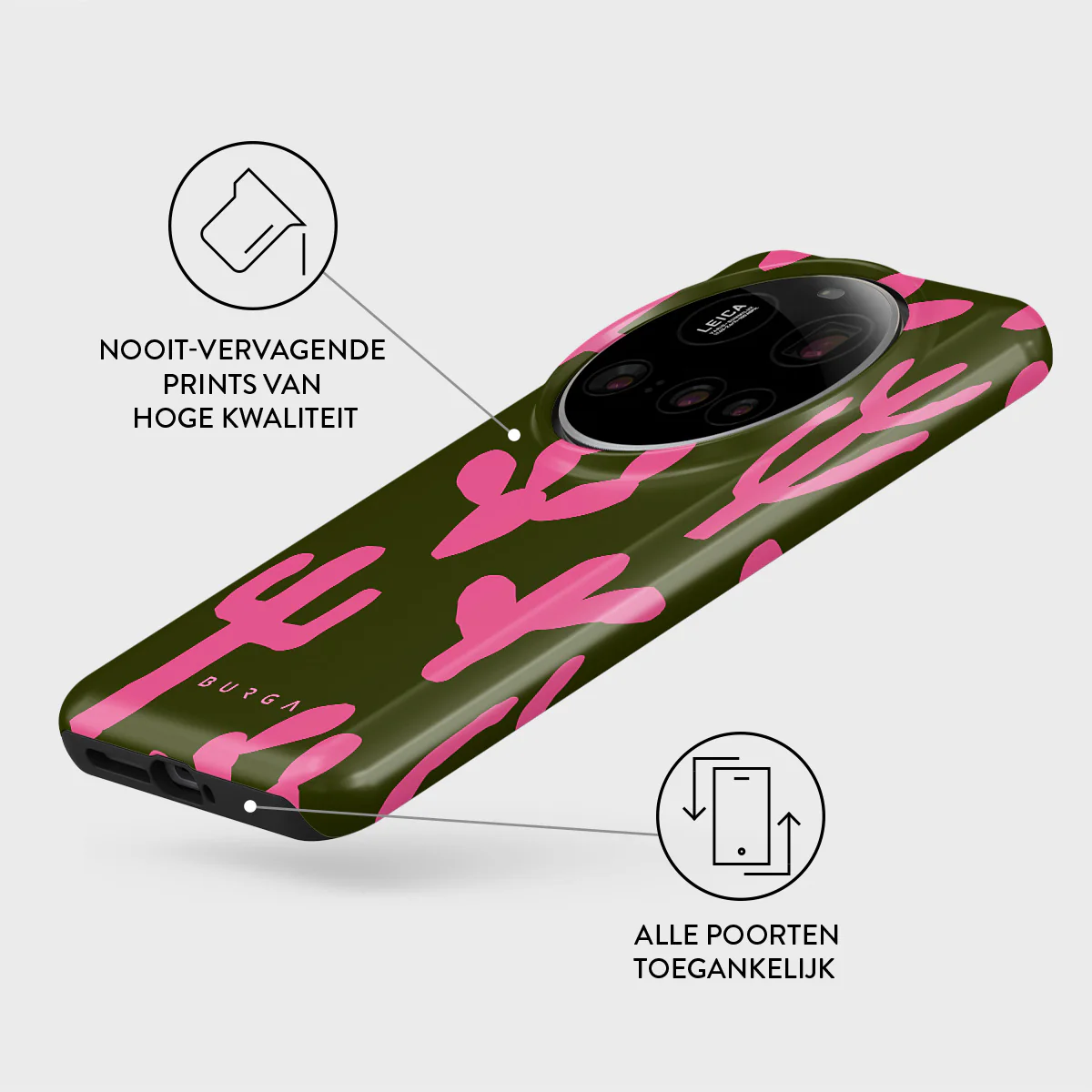 - Verhoogde randen rond de camera voor extra bescherming.