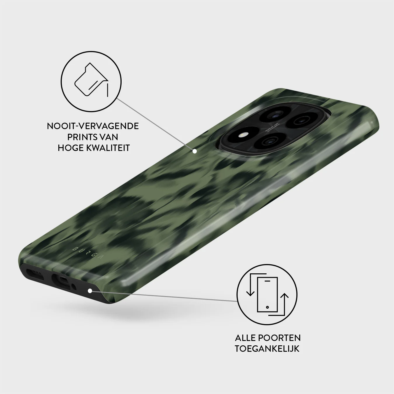 - Verhoogde randen rond de camera voor extra bescherming.