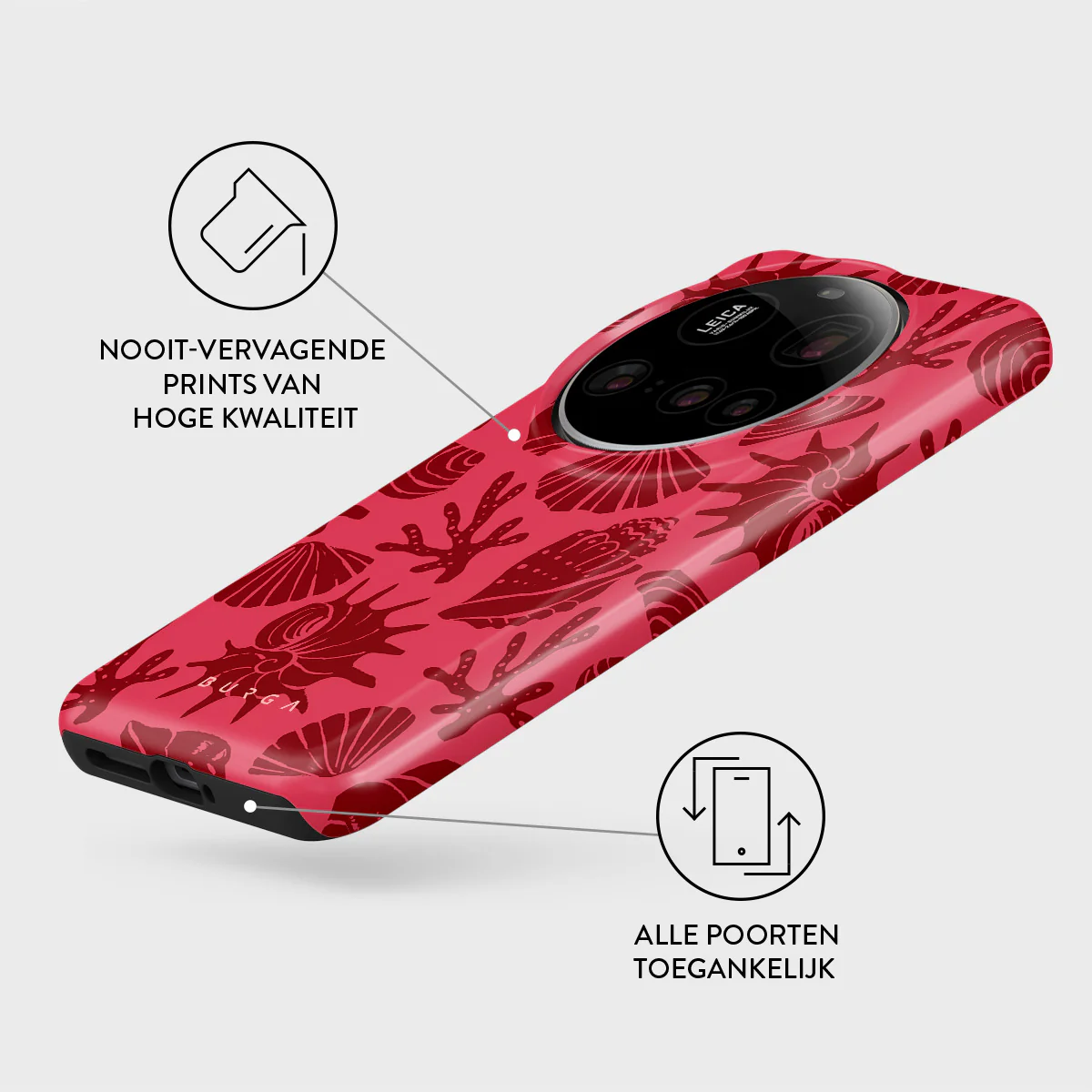- Verhoogde randen rond de camera voor extra bescherming.