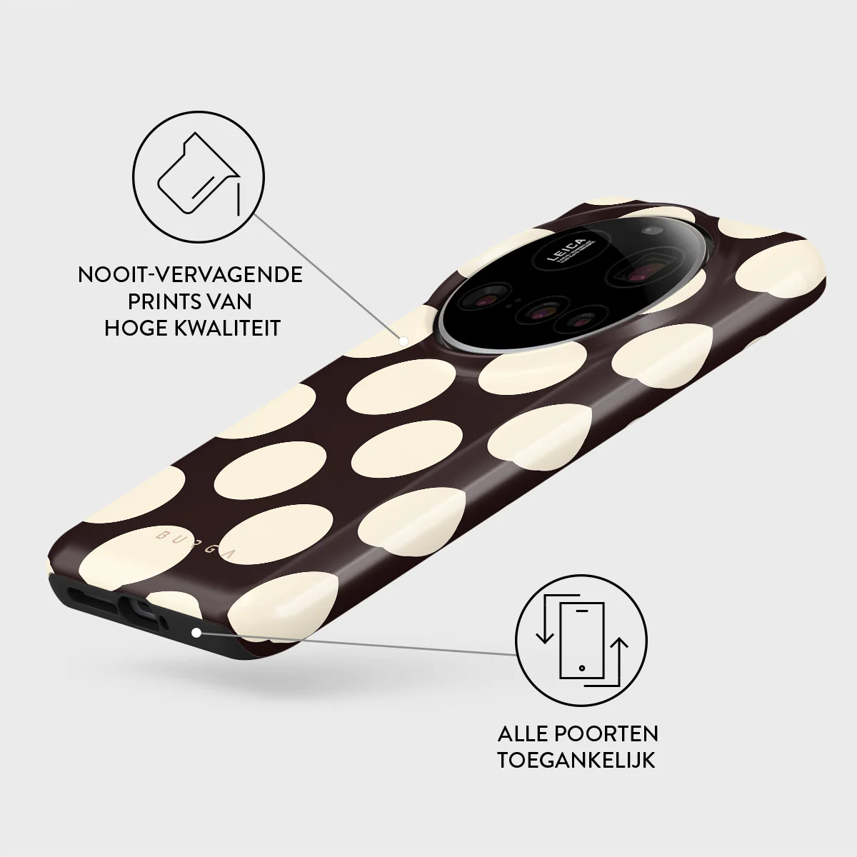 - Verhoogde randen rond de camera voor extra bescherming.