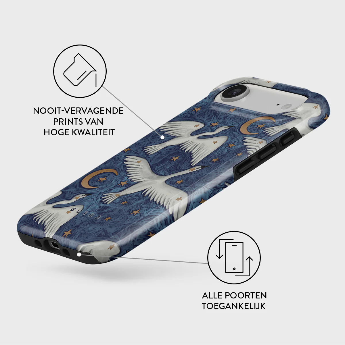 - Verhoogde randen rond de camera voor extra bescherming.