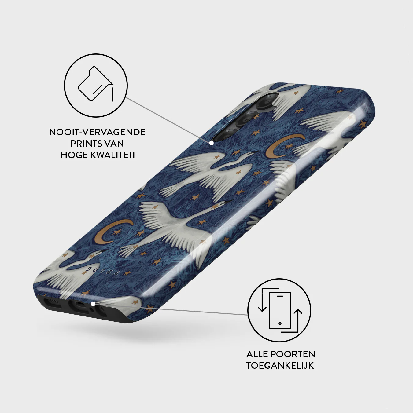 - Verhoogde randen rond de camera voor extra bescherming.