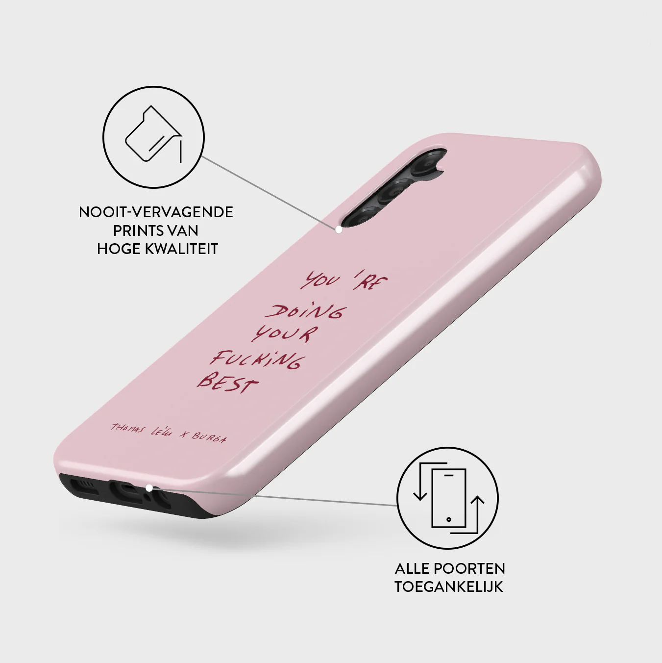 - Verhoogde randen rond de camera voor extra bescherming.