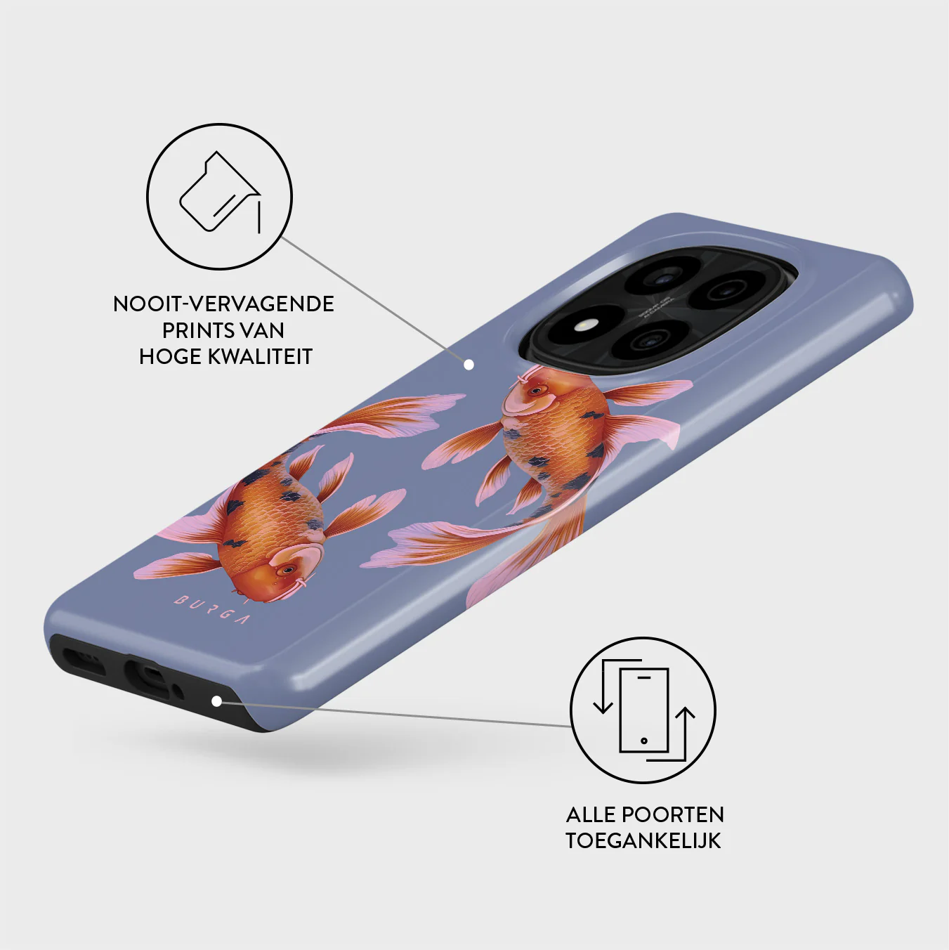 - Verhoogde randen rond de camera voor extra bescherming.